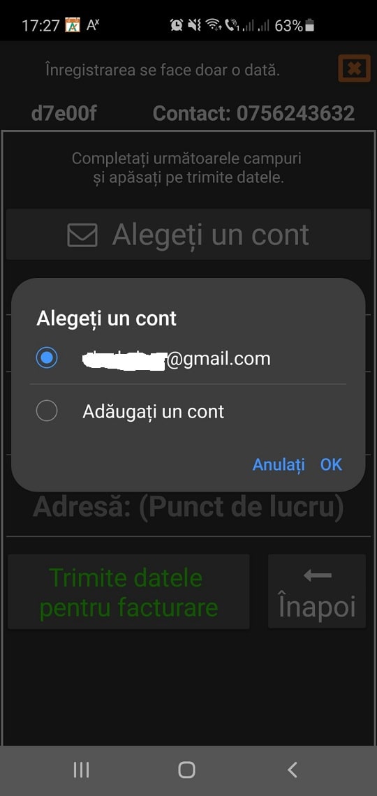 Vei vedea un mesaj asemănător. Alege emailul potrivit si apasă pe OK'