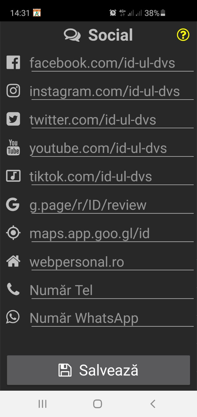Puteți apăsa pe iconița în stânga fiecărei link, și să completați cu id-ul dvs.