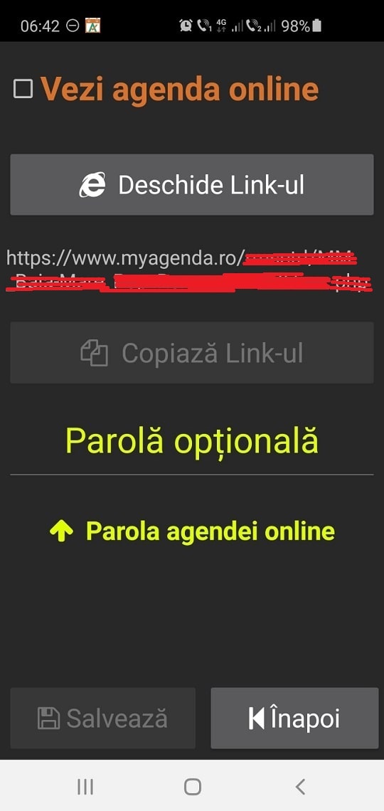 După ce ați bifat 'Vezi agenda online', apăsă pe 'Deshide link'