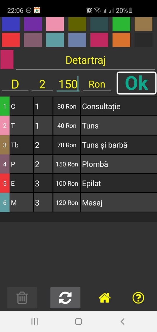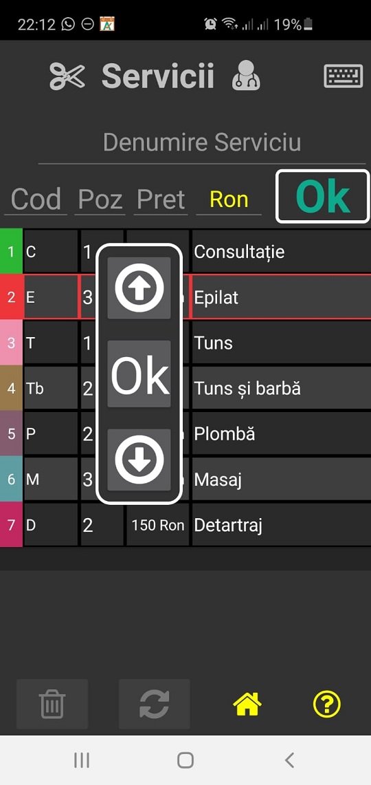 6. Puteti de asemenea apasa pe oricare serviciu deja introdus, modifica si apasa tot pe 'OK' pentru a memora modificarile.