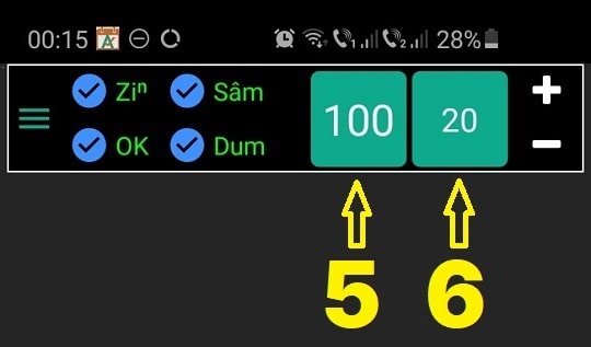 (4) În partea dreaptă total, aveti cele doua butoane + si - prin care puteti ajusta aceste doua valori.