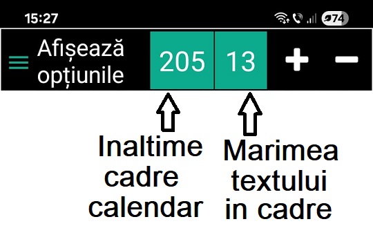 (5) Butonul pătrat din stânga, cu numărul mare (indicat peste 70%), reprezintă un coefficient de înălțime/lățime a butoanelor cu zilele din lună, 100% înseamnând butoane perfect pătrate.